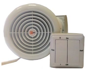 TkV-03i ПС-2 приточная с подогревателем и ионизатором. Регулятор скорости (2 ступени) настенный. 30 м³/ч или 100 м³/ч, 400 Вт (эл. калорифер) + 18 Вт (вентилятор), встроенный термостат (менее +16ºС- вкл., более +29ºС- выкл.), обратный клапан, фильтр (угольный + G4). Минимальная толщина стены 300 мм, Ø 150 мм . Внутренняя решётка — круглая белая