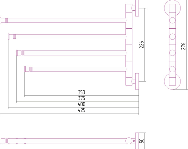 Держатель полотенец ВЕЕР-4 поворотный (L 425)